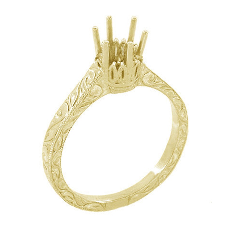 1/3 Carat Crown Filigree Scrolls Art Deco Engagement Ring Setting in Yellow Gold – 14 Karat or 18 Karat