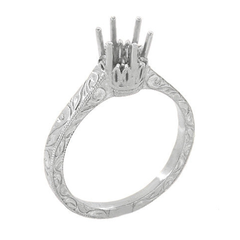 1/4 Carat Palladium Filigree Scrolls Engraved Art Deco Crown Engagement Ring Mounting | 4mm