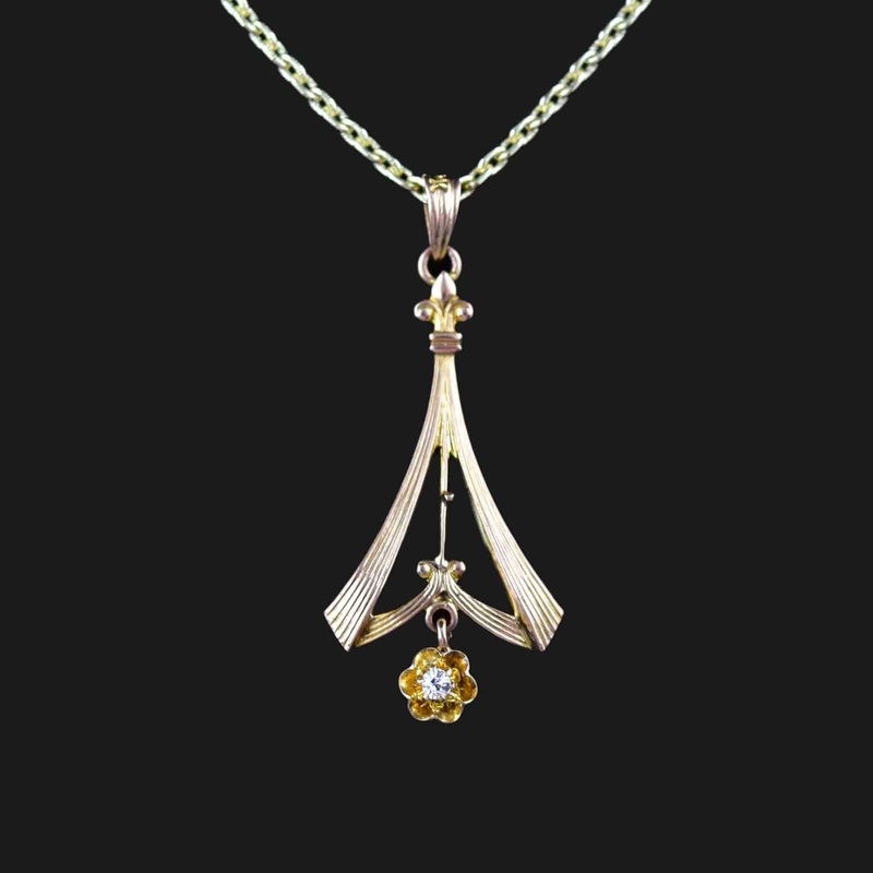 10K Rose Gold Diamond Art Nouveau Lavaliere Pendant Necklace