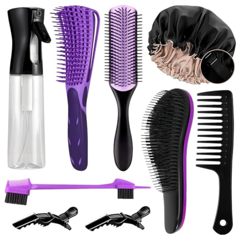 10PCS Detangling Brush Set with Spray Bottle & Sleep BonnetIntroducing the 10PCS Detangling Brush Set with Spray Bottle & Sleep Bonnet your ultimate solution for curly hair care! This all-in-one set has everything you need to keep your hair looking fabulou