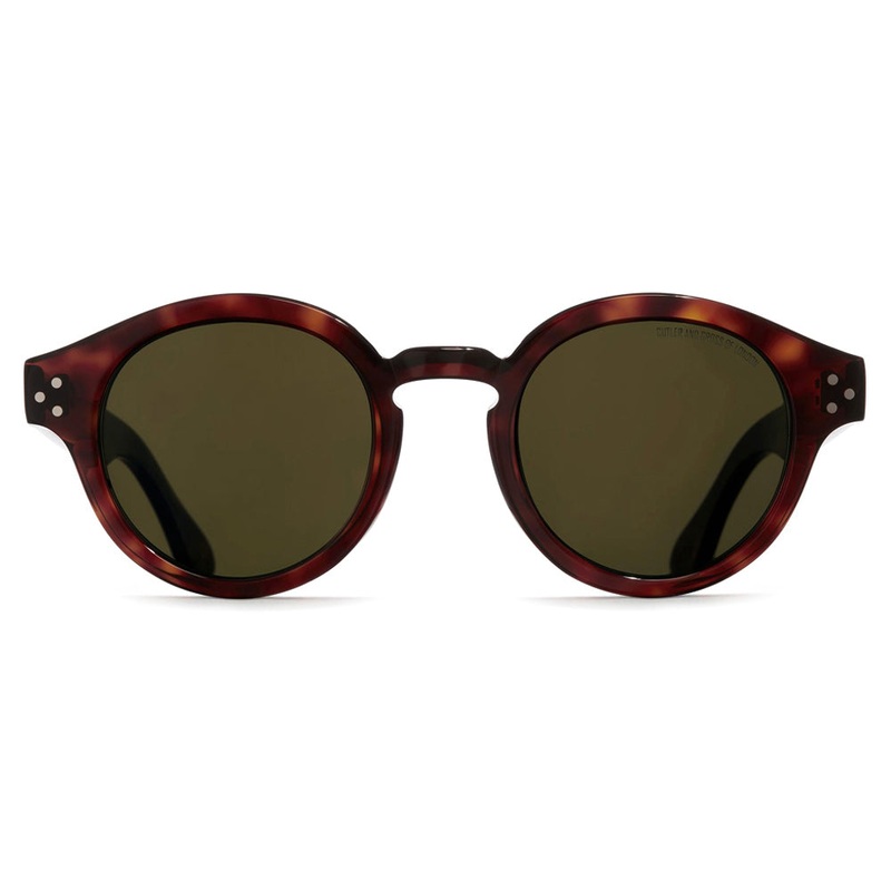 The Cutler and Gross // 1291V2 offers an iconic bold round shape featuring a keyhole bridge and vintage circular pins. Includes Cutler & Gross case, cleaning cloth, and 1-year manufacturer warranty.