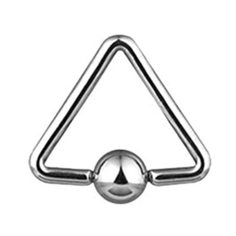 The 12 gauge triangle captive bead ring is made from 316L stainless steel.Captive rings sized 12 gauge or larger may require a pair of ring opening pliers to assist with bead removal and replacement.
