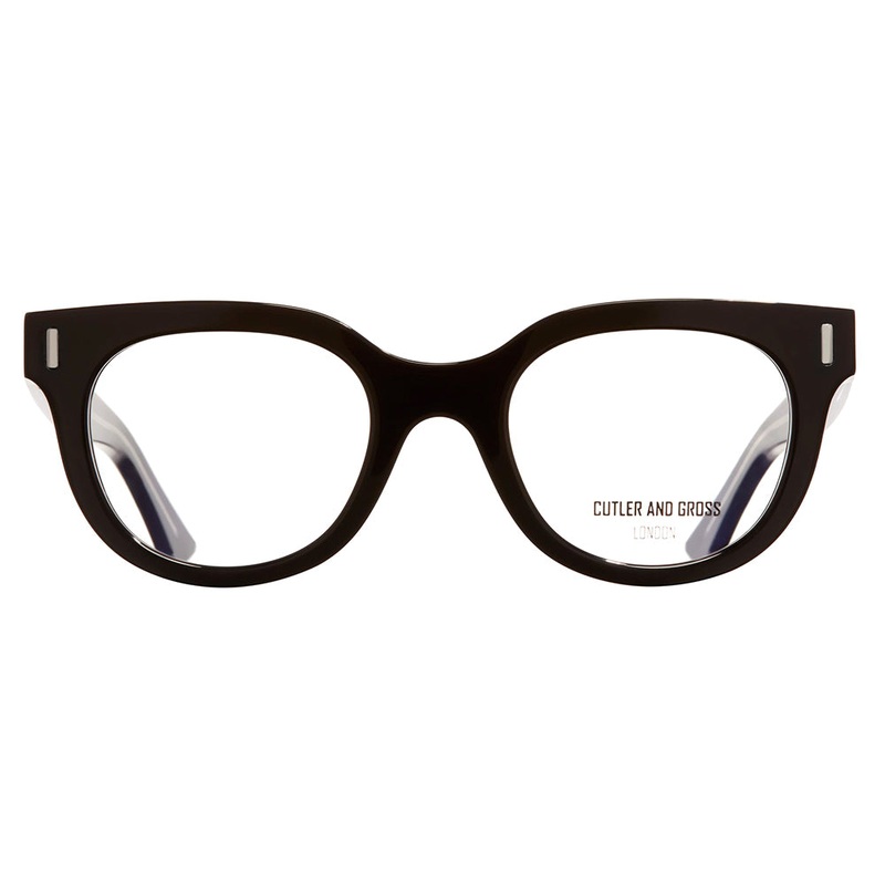 The Cutler and Gross // 1304 is a bold cat-eye optical frame with interior ‘televisioni’ milling from 9mm sheet acetate, milled from behind for comfort. Flat bridge, a new vertical frontal pin, and pinless temples. Includes Cutler & Gross case, cleaning cloth, and 1-year manufacturer warranty.