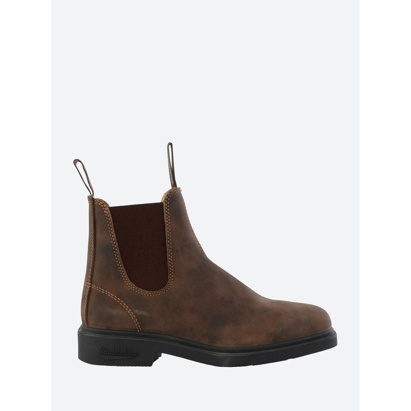 Classic good looks meet true comfort and durability, the #1306 Dress boots come in Blundstone's signature rustic brown leather and feature a lean profile and chisel toe.Ankle heightElastic side gussetsTwo pull tabsChisel toeWater resistantThermo-polyuretha