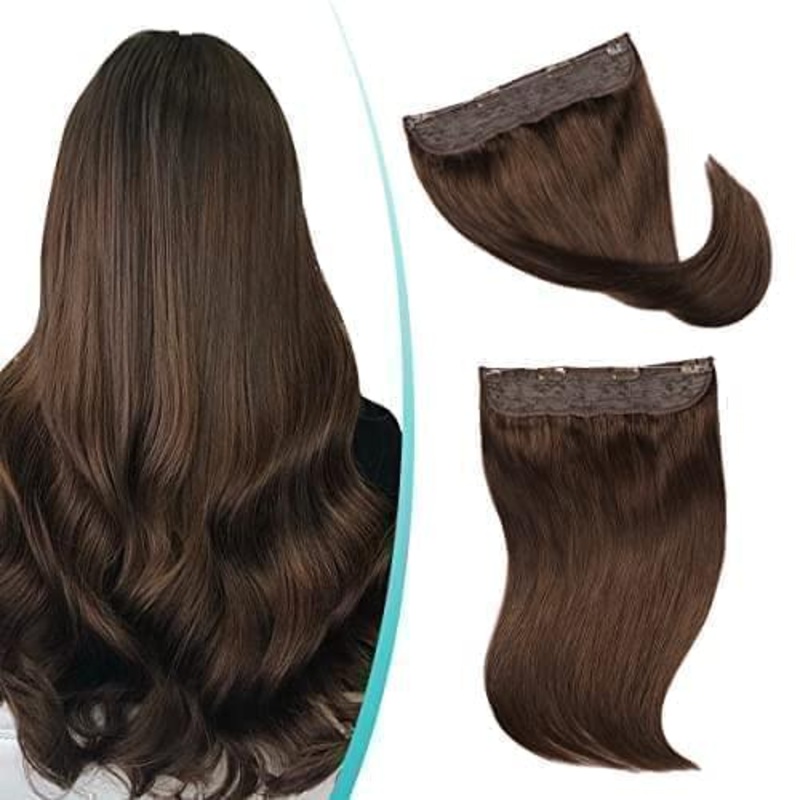 14 inch Chocolate Brown Invisible Fish Line Hair Extension100% Real natural human hairThis halo hair extension is great for adding volume and length to your hairOrder two sets for a fuller lookWeight 65gColour 2Easy to install,transparent invisible fishlin