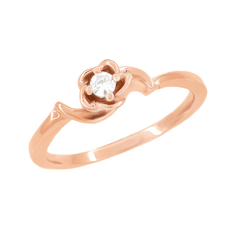 14 Karat Rose Gold Retro Moderne Vintage Style Rose Setting Diamond Promise Ring