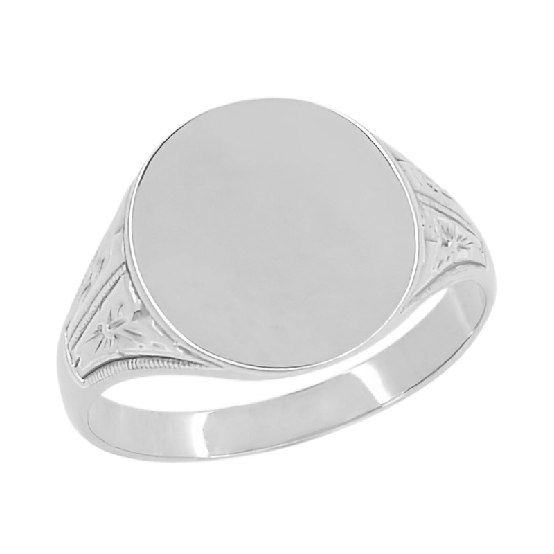 14 Karat White Gold Victorian Side Carved Antique Engravable Oval Signet Ring – Kent