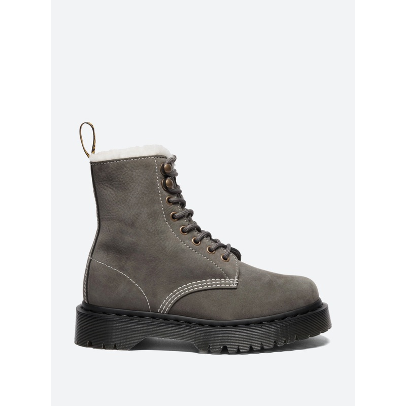 The winter-ready 8-eye 1460 Serena boot is back and louder than ever. Built from tumbled nubuck and lined with faux fur for enhanced insulation. Welted on a rugged AirWair sole and marked with yellow stitching. Finished with a scripted heel loop.Ankle heig