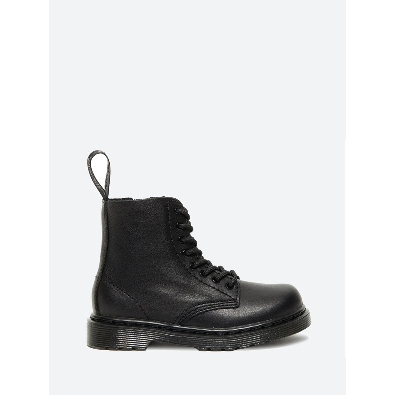 A toddler-sized version of Dr. Martens original 8-eye icon, this no-nonsense 1460 is a minimal monochromatic boot in tip-to-toe black.Ankle heightEight eyelet lace-upInside zip closureBranded heel loopAir-cushioned soleMaterialsUpper: leatherLining: textil