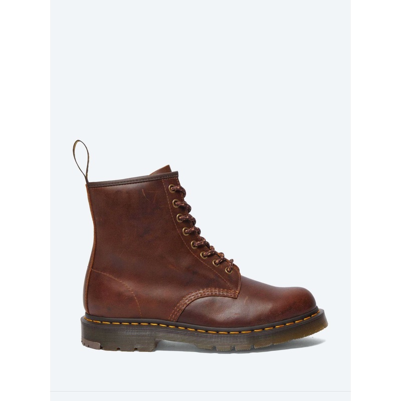 Dr. Martens 1460 has all the classic Docs DNA, but it's been re-engineered for workers doing long shifts on their feet. Features extra cushioning and an innovative slip-resistant tread.Ankle heightEight eyelet lace-upPadded collar and tongueYellow stitchin