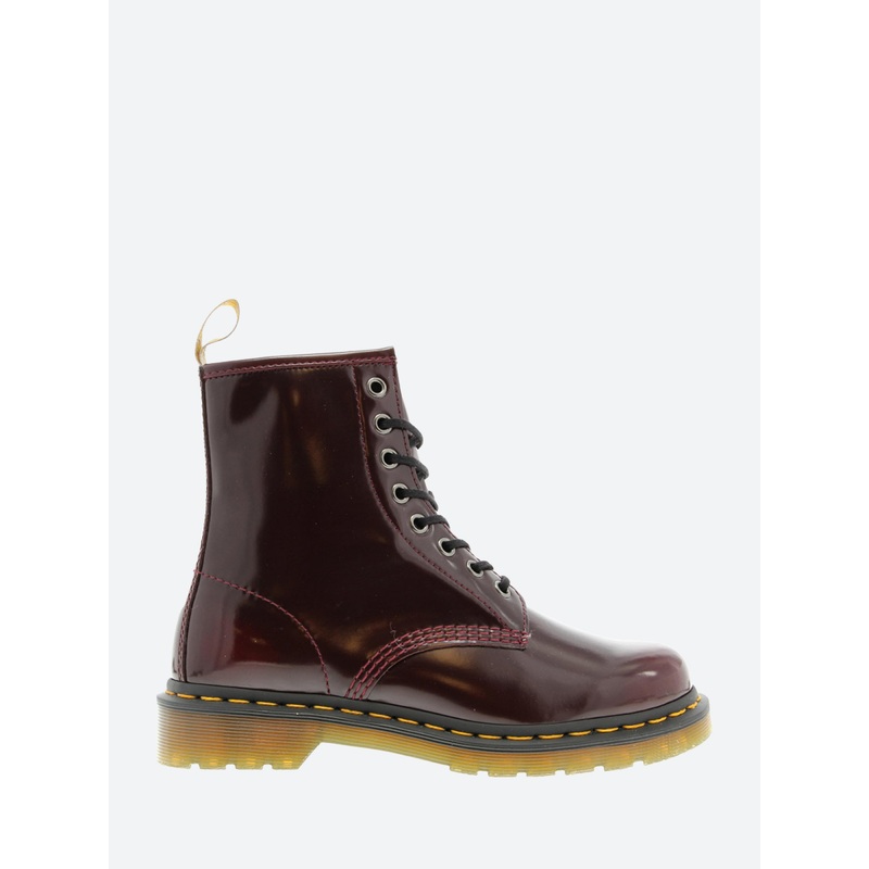 Dr. Martens classic 1460 8-eye boot with a completely vegan construction.Ankle heightEight eyelet lace-upHigh-shine upperPull loop at the heelYellow stitchingAir-cushioned soleGoodyear weltedMaterialsUpper: syntheticOutsole: rubberSize GuideUnisex style in