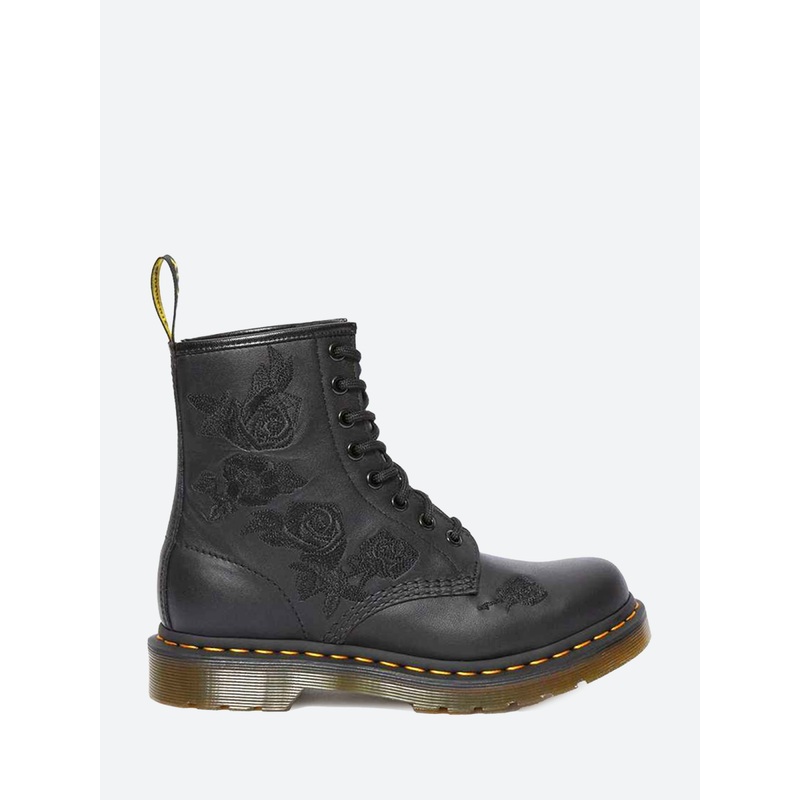 The 1460 was the first Dr. Martens boot and this one is true to the original, but borrows style from the 14-eye 1914 Vonda. Black embroidered flowers cascade down the side of the boot.
