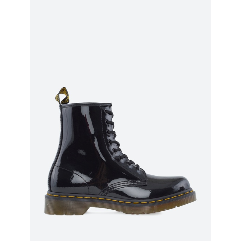 Dr. Martens' high-shine Patent Lamper 1460 boot stays true to its Original construction: yellow welt stitching, a scripted AirWair heel loop and a tough air-cushioned sole.Ankle heightLace-up closurePull loop at heelYellow stitchingAir cushioned soleMateri