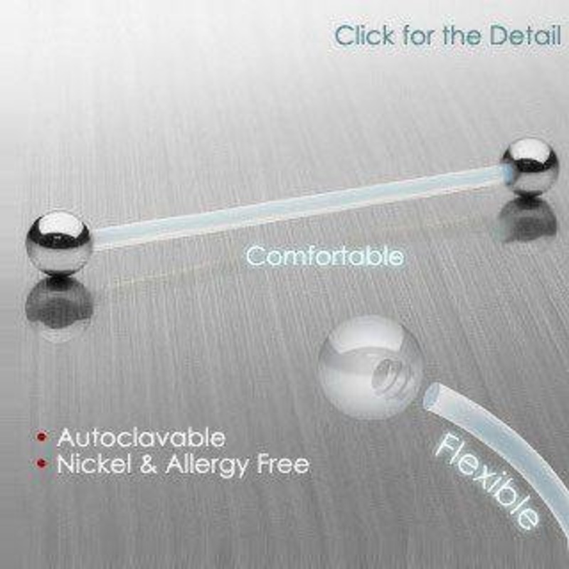 The 14 gauge barbell is made from bioflex plastic with external threading. It's flexible, autoclavable and can be cut to any length. Both 5mm stainless steel balls are removable. These are not autoclavable. Choose your size below.These make excellent pregn