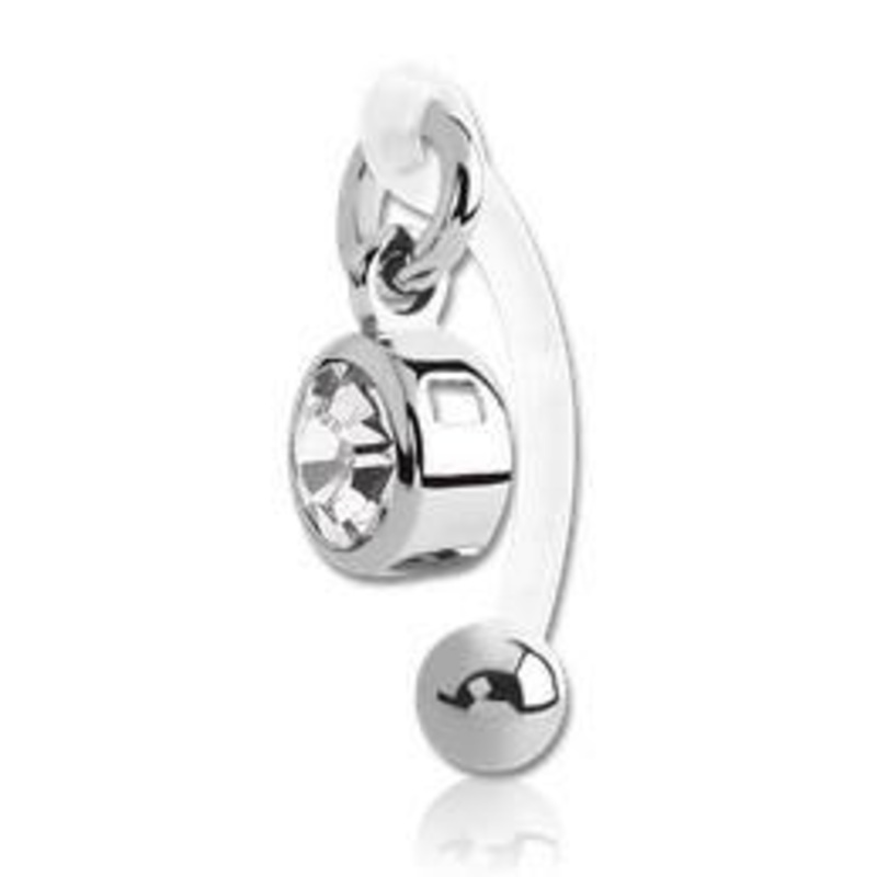 These 14 gauge curved bioflex barbells are 5/8" long, but can be trimmed down to any desired length. Only the 316L stainless steel 5mm ball end is removable. These are a great option for a VCH piercing. Choose your gem color below.