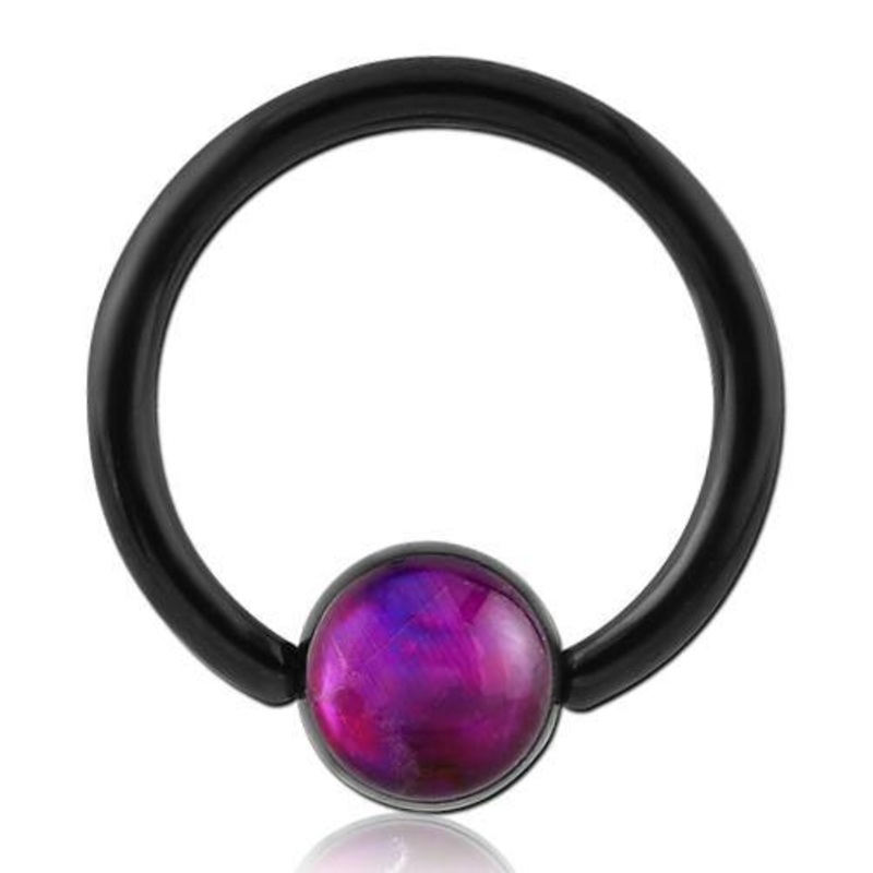 The 14 gauge captive bead ring is made from black PVD coated 316L stainless steel. Choose your 6mm mother of pearl bead color below.