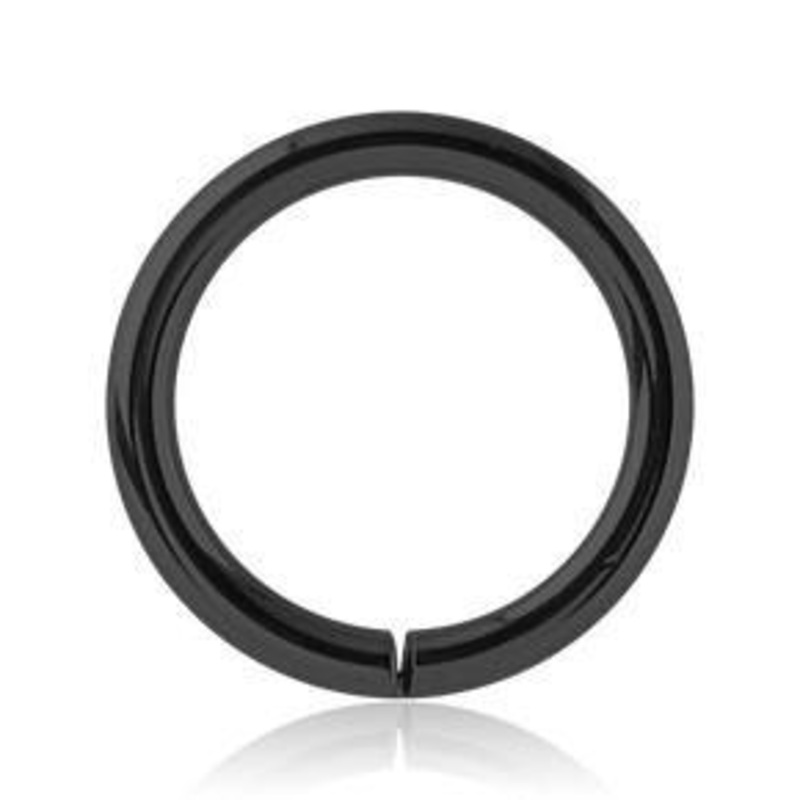 The 14 gauge continuous ring is made from black PVD coated 316L stainless steel. Also called seamless rings, there's a small gap between the two flat-cut ends of the ring. If you're unsure how to open and close continuous rings (a.k.a. seamless), be sure t