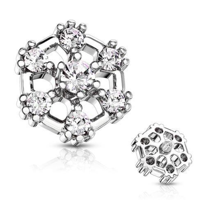 14g CZ Snowflake Stainless End 14g – 7mm diameter Clear Stainless Steel