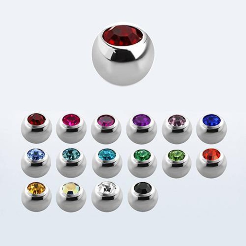 You’ll get a two pack of 316L stainless steel gem balls that fit most any 14g externally threaded barbell. Choose your ball size and gem color below.