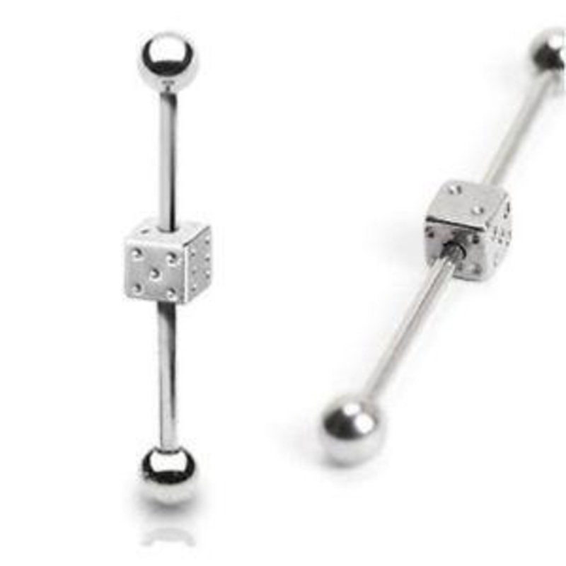 The 14 gauge dice industrial barbell is made from stainless steel with external threading. Choose your barbell length below.
