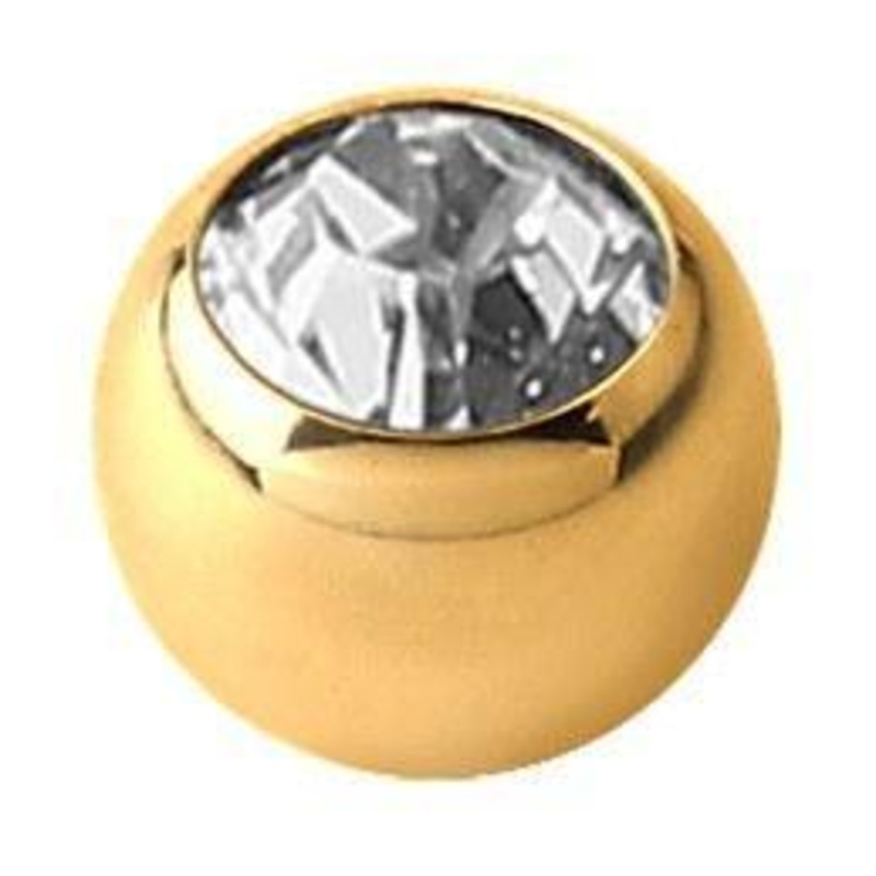 You'll get a two pack of gold PVD coated 316L stainless steel gem balls that fit most any 14g externally threaded barbell. The cz is available in clear only. Choose your size below.