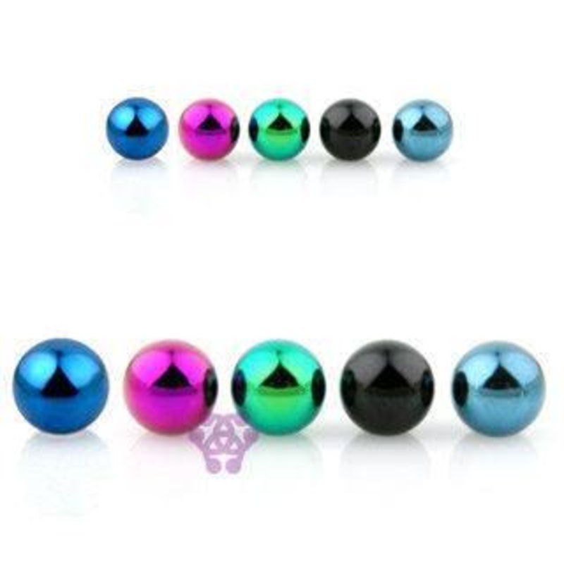 You'll get two PVD coated316L stainless steel balls thatfit most any 14g externally threaded barbell. Choose your size and color below.
