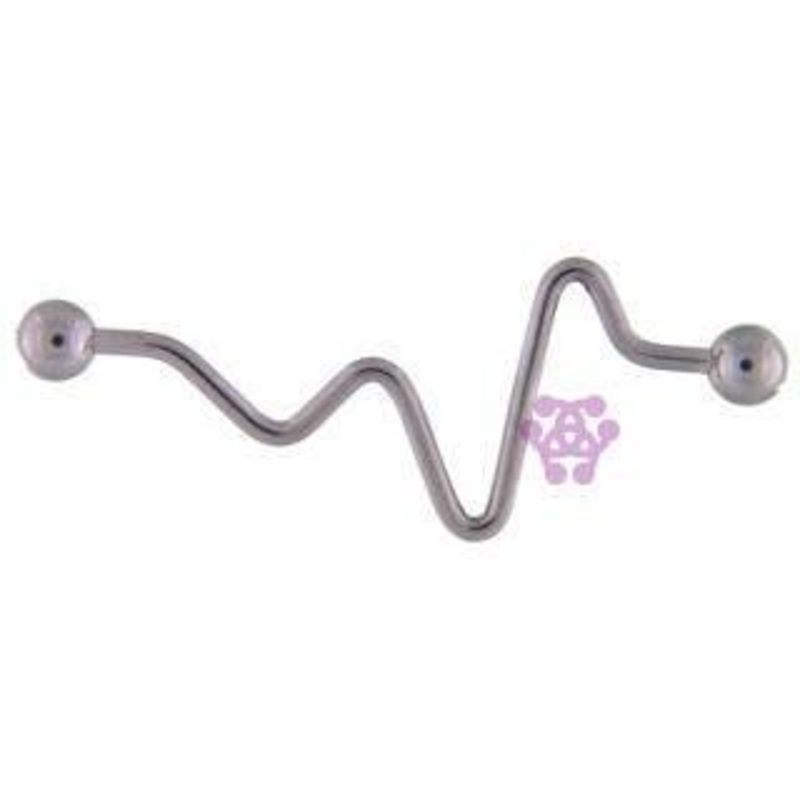 The 14 gauge shockwave industrial barbell is made from 316L stainless steel with external threading.
