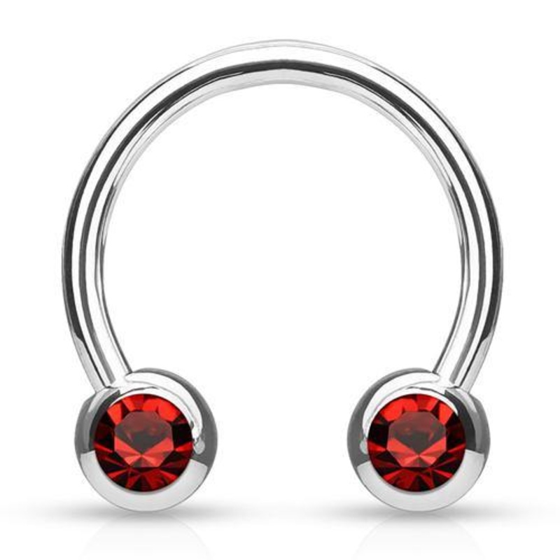 The 14 gauge circular barbell is made from 316L stainless steel with external threading. Both side-set gem ball ends are removable. Choose your gem color below.