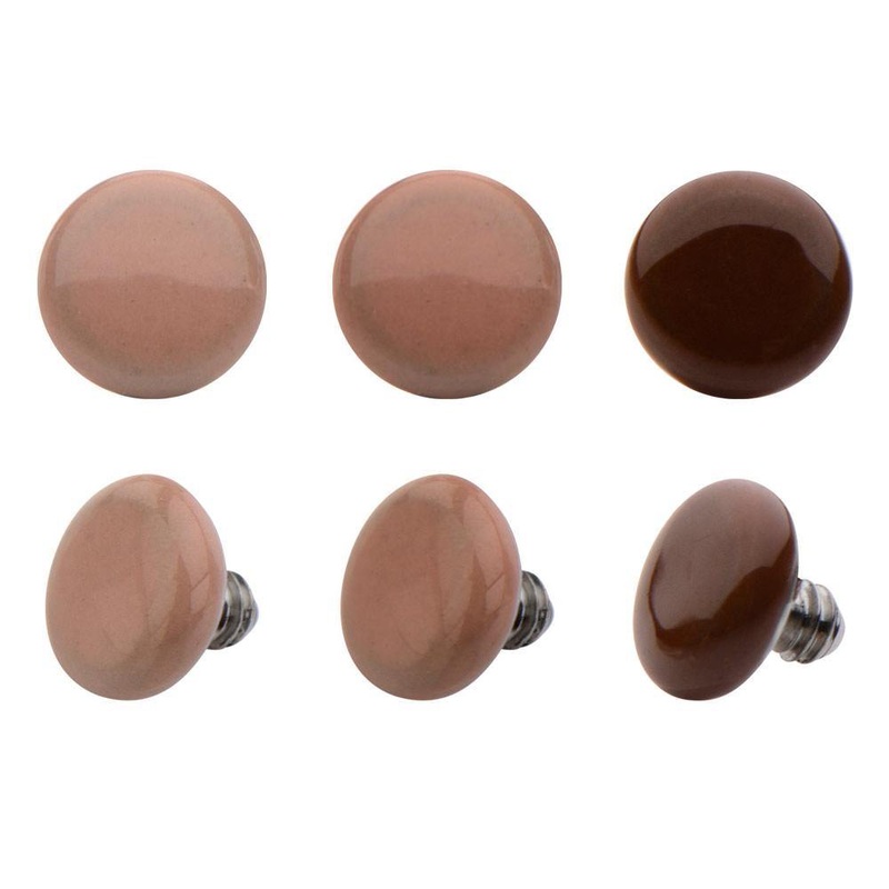 The 14 gauge 4mm skin tone disc is made from 316L stainless steel. These will fit most any 14 gauge internally threaded straight barbell, labret or dermal anchor. We cannot guarantee compatibility with curved barbells. Choose your color below.