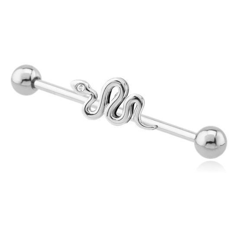 The 14 gauge snake industrial barbell is made from 316L stainless steel with external threading. The charm is fixed to the barbell.