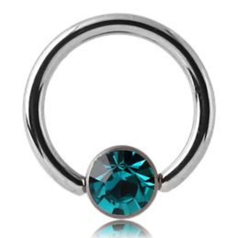 14g Stainless Captive CZ Disc Bead Ring 14g – 5/16″ diameter (8mm) – 4mm bead Aqua Stainless Steel
