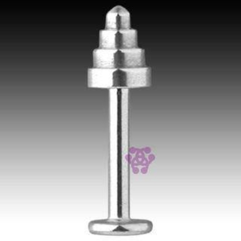 The 14 gauge labret barbell is made from 316L stainless steel with external threading. Only the 7mm stepped spike top removable.
