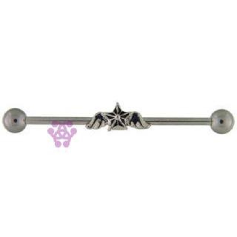 14g Winged Star Industrial Barbell 14g – 1-1/2″ long (38mm) Stainless Steel