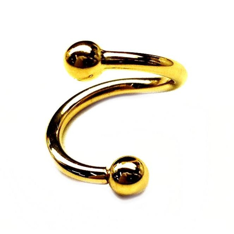 The 14 gauge spiral barbell is made from externally threaded solid yellow 14k gold. They're nickel free, hypoallergenic, and polished to a mirror finish. Available only in the 5/16" diameter.