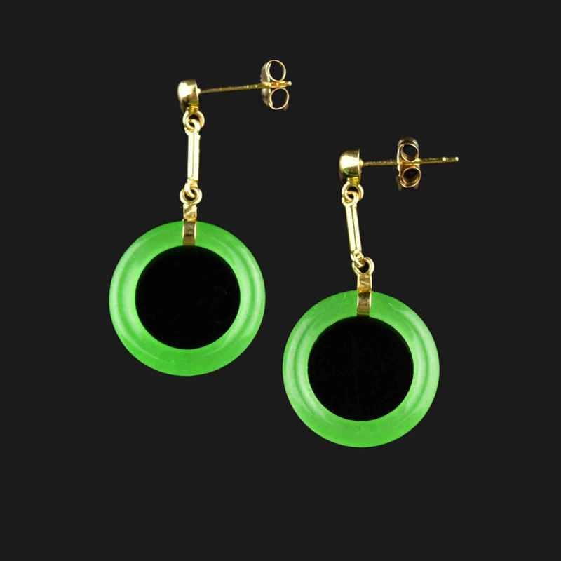 14K Gold Bar Jade Hoop Dangle Earrings