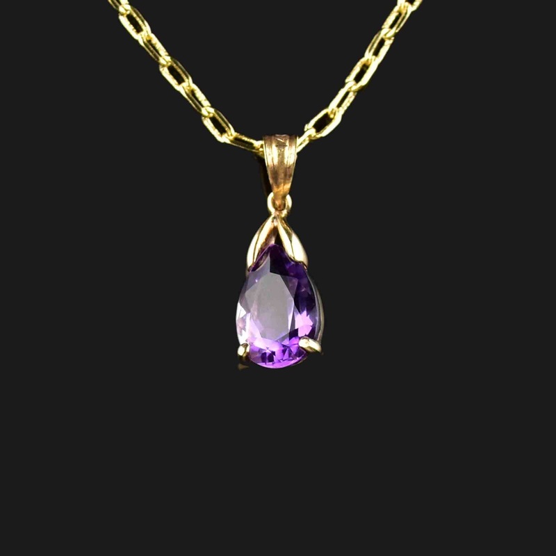 14K Gold Pear Cut Amethyst Pendant Necklace