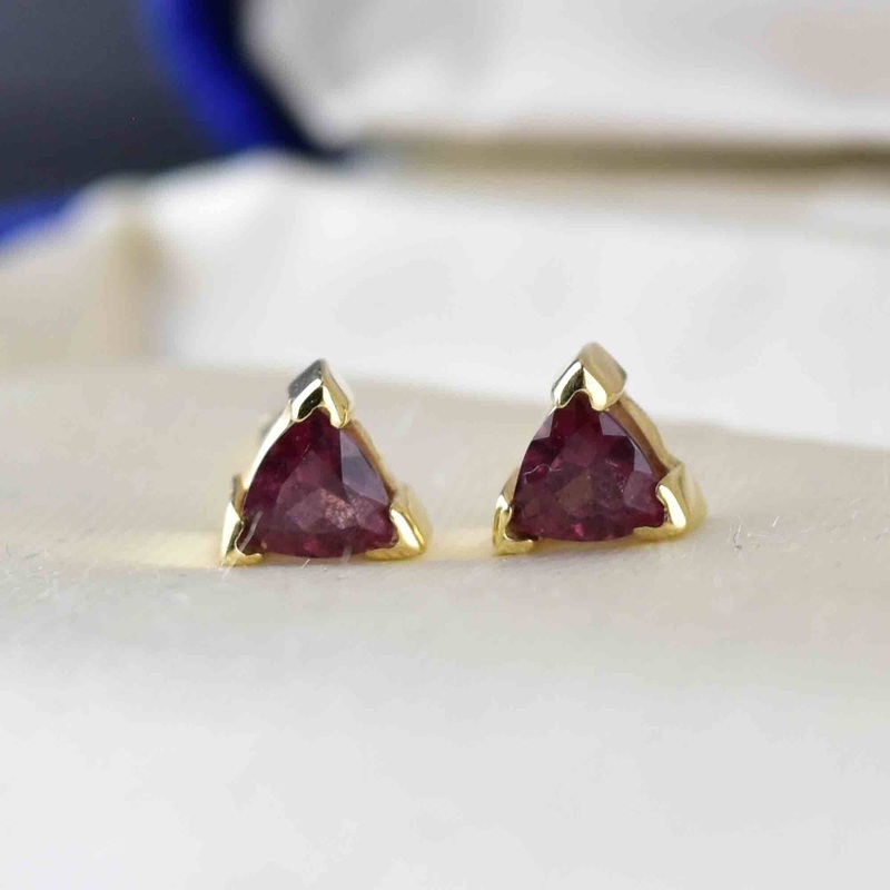 14K Gold Trillion Cut Pink Tourmaline Stud Earrings