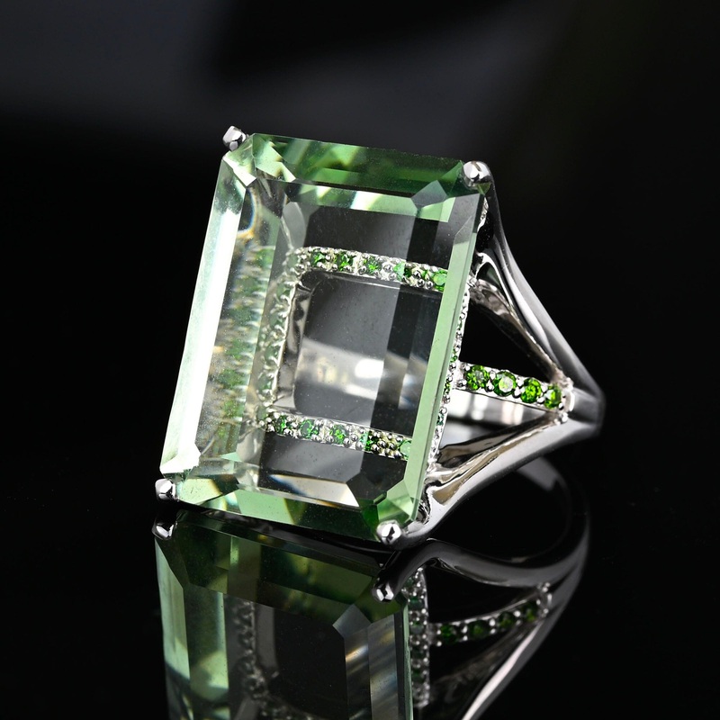 Be the first to review “14K White Gold Green Diamond Underpass Prasiolite Ring”