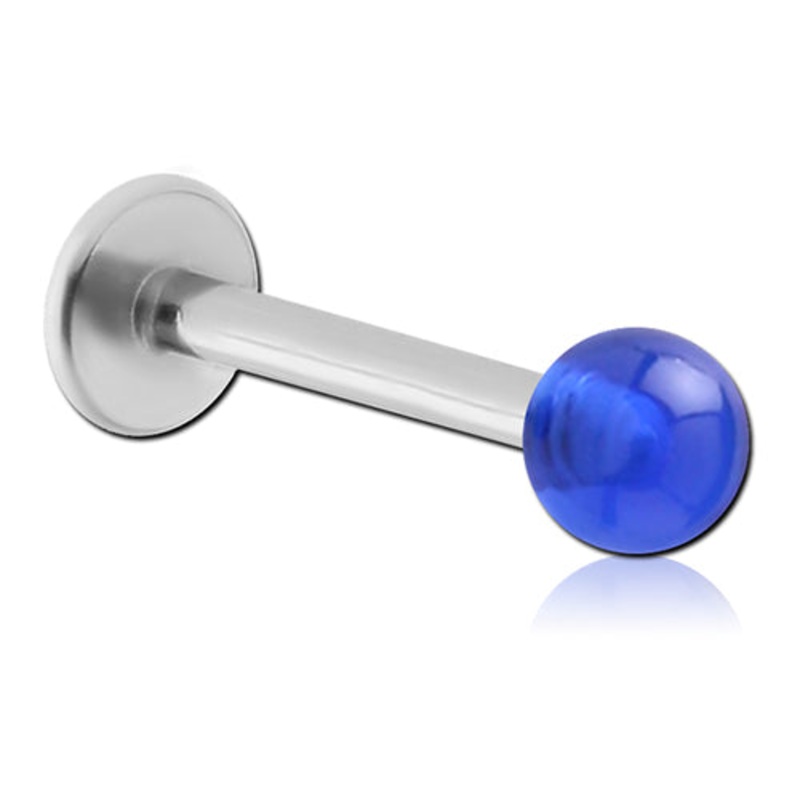 The 16 gauge labret barbell is made from 316L stainless steel with external threading. Only the acrylic ball is removable. Choose your size and ball color below.[click here for replacement balls]