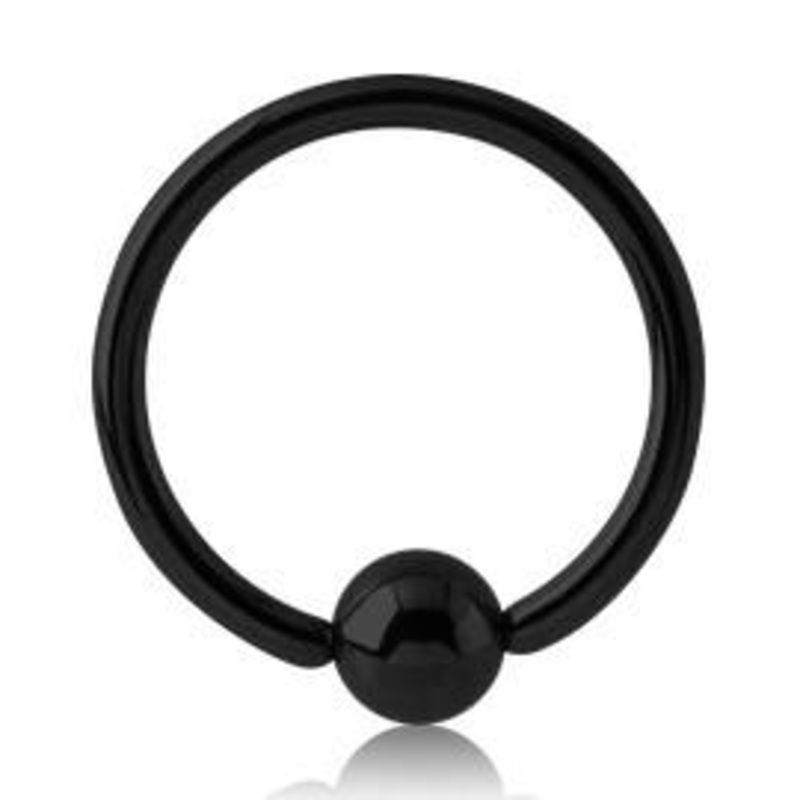 The 16 gauge captive bead ring is made from black pvd coated grade 23 titanium (Ti 6Al-4V ELI ASTM F136). Choose your size below.