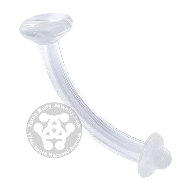 The 16 gauge acrylic eyebrow retainer has a flat head with 3mm diameter. Each retainer includes one clear o-ring. These are an excellent short term solution for hiding your eyebrow piercing. Choose your size below.
