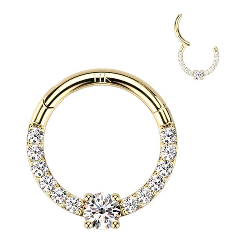 Be the first to review “16g CZ Solitaire Front 14k Gold Hinged Ring 16g – 5/16″ diameter (8mm) Clear Yellow 14k Gold”