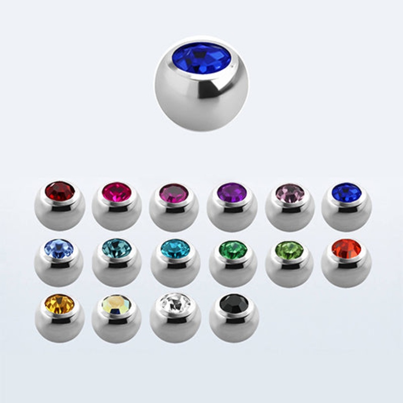 You'll get a two pack of 316L stainless steel gem balls that fit most any 16g externally threaded barbell. Choose your ball size and gem color below.