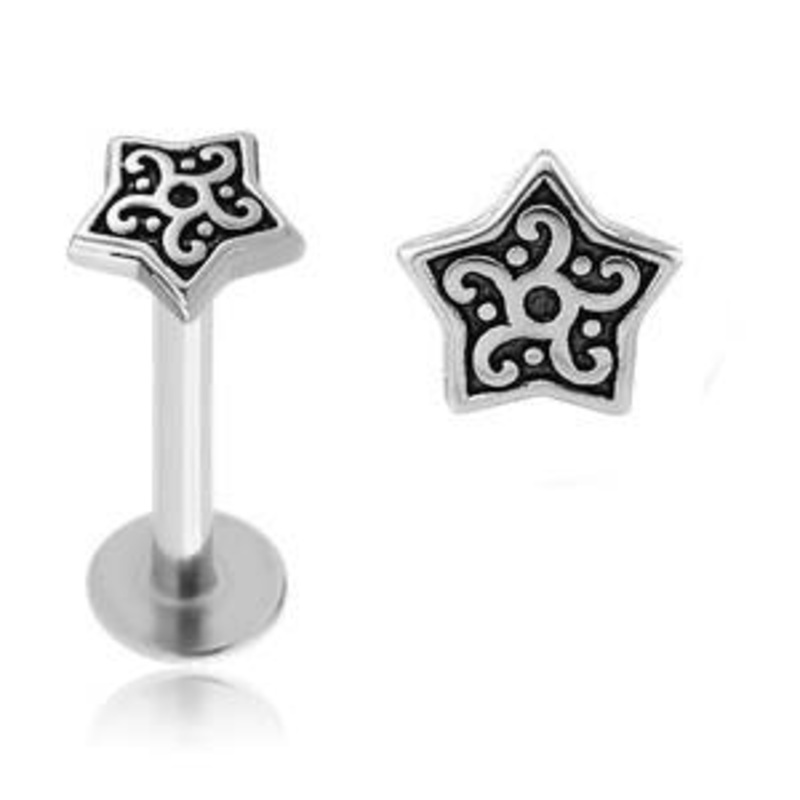 16g Fancy Star Stainless Labret 16g – 5/16″ long (8mm) Stainless Steel