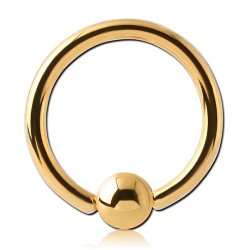 The 16 gauge captive bead ring is made from gold PVD coated 316L stainless steel. Choose your size below.