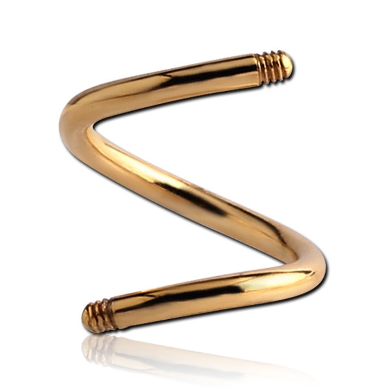 The 16 gauge spiral barbell is made from gold PVD coated 316L stainless steel with external threading. You’ll receive two identical barbells without any ends. Choose your size below.