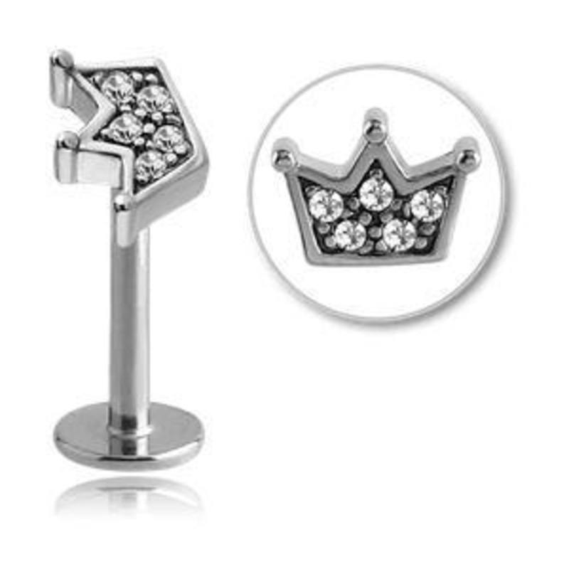 16g Paved Crown Stainless Labret 16g – 5/16″ long (8mm) Clear Stainless Steel
