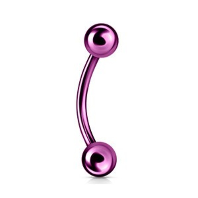 The 16 gauge curved barbell is made from PVD coated 316L stainless steel with external threading. Both ball ends are removable. Choose your size and color below.