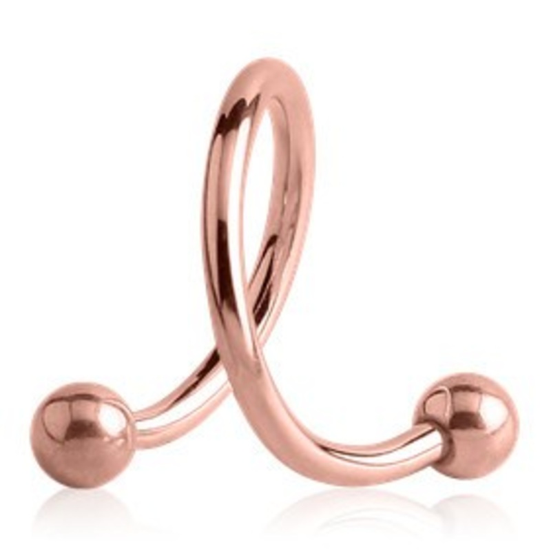16g Rose Gold Spiral Barbell 16g – 1/4″ diameter (6mm) – 3mm balls Rose Gold Stainless
