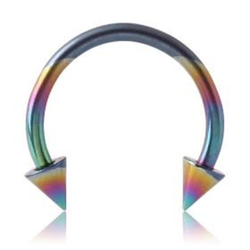 16g Spiked Rainbow Titanium Circular Barbell 16g – 5/16″ diameter (8mm) – 3x3mm cones Rainbow